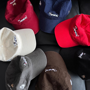 潮牌可爱小狗刺绣软顶棒球帽子女韩版百搭大头围显脸小鸭舌帽
