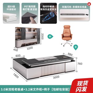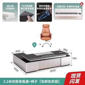 【E0级环保板材】双侧柜3.2米老板桌+椅子