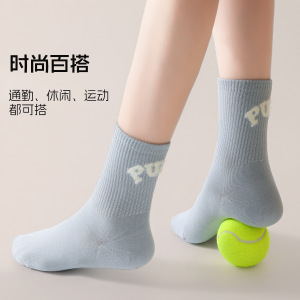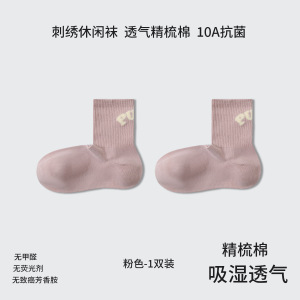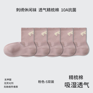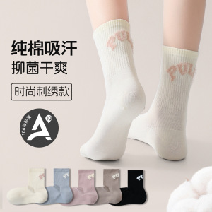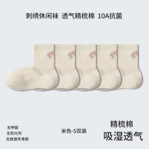 90度稳稳袜秋冬女纯棉运动透气吸汗纯色刺绣袜子学院风女士休闲袜