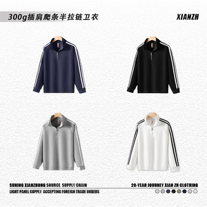 三条杠半拉链卫衣秋冬立领卫衣男女简约百搭纯色外套潮流爬条宽松