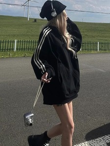 三条杠半拉链卫衣女春秋薄款宽松oversize情侣休闲百搭外套