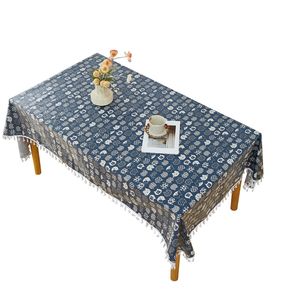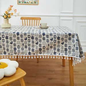 覆膜防水防油桌布布艺棉麻流苏餐桌布免洗长方形餐厅台布防尘盖巾