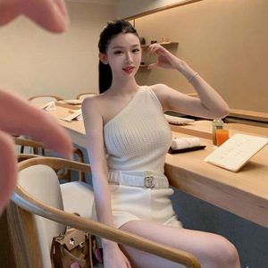 今年流行白色斜肩上衣女2025夏季减龄时尚洋气高级感修身显瘦T恤