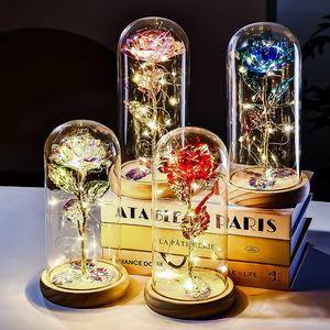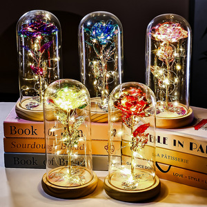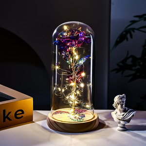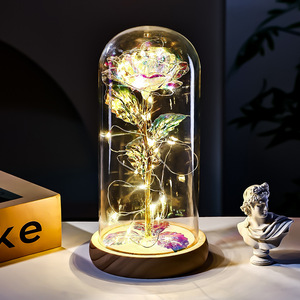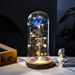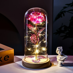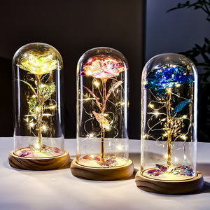 原木底金箔玫瑰花玻璃罩情人节礼物跨境创意礼品实用摆件教师节
