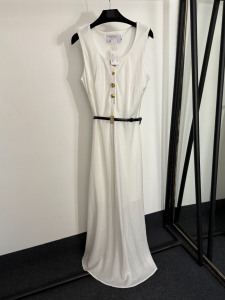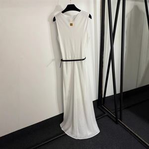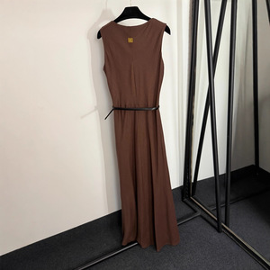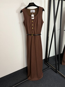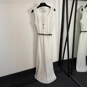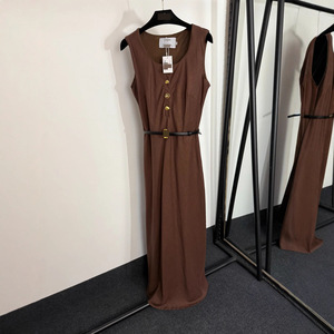 2025夏季南油高端新款多种金纽扣收腰无袖背心连衣裙 长裙配腰带