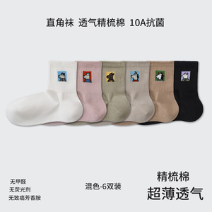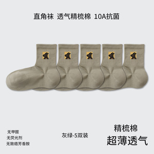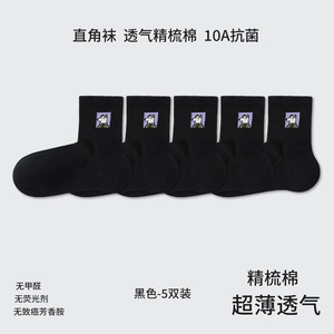 90度稳稳袜男女士秋冬袜子纯棉防臭吸汗纯色提花运动袜中筒直角袜
