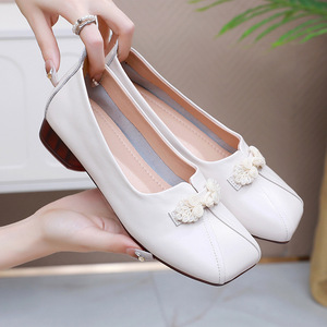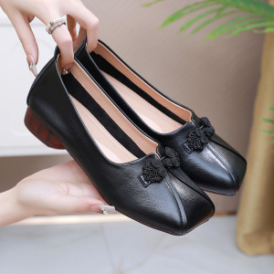 新中式国风妈妈鞋真皮软底方头平底中老年女鞋夏大码不累脚单鞋女