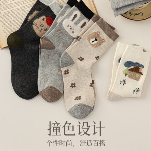卡爱卡通袜子女秋冬无骨植绒日系中厚款韩版学生袜子中筒甜美猫咪