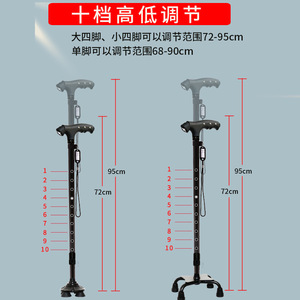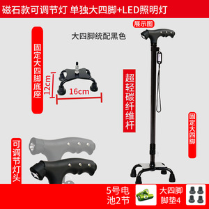 碳纤维老人拐杖防滑拐棍碳素手杖老年人用超轻四脚带灯登山杖代发