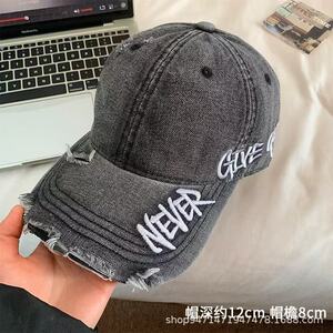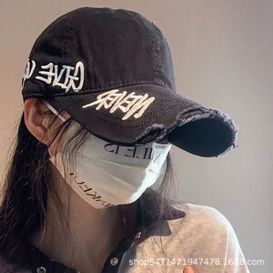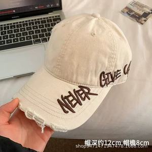 美式复古水洗做旧破洞棒球帽女夏季遮阳字母刺绣百搭显脸小鸭舌帽