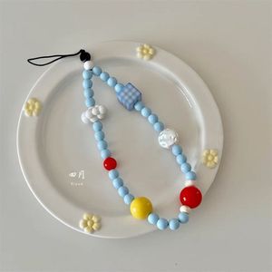 ins云朵方格手机挂件手机挂链挂绳串珠可爱ccd相机链条清新防丢绳