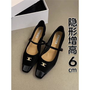 内粗跟单鞋女2025春秋新款小香风高跟鞋小个子玛丽珍鞋女