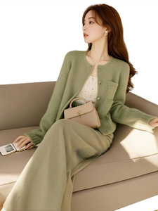 豆沙绿色针织衫外套软糯毛衣女装2025新爆款春季洋气独特别致上衣