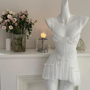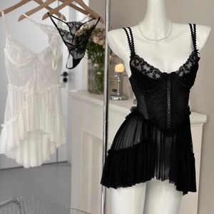 蕾丝网纱纯欲风睡衣带钢圈吊带裙小胸显大甜美睡裙家居服高级感qq
