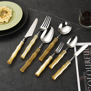 304不锈钢竹节高颜值车床款西餐具轻奢刀叉勺创意亚克力工厂直销