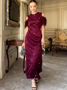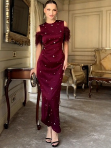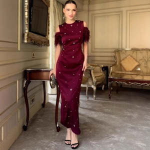 2025年欧美亚马逊外贸夏季新款毛毛拼接露肩气质显瘦晚礼服连衣裙