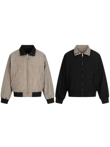 11KN美式复古双面外套男女潮设计感街头痞帅做旧宽松翻领夹克上衣