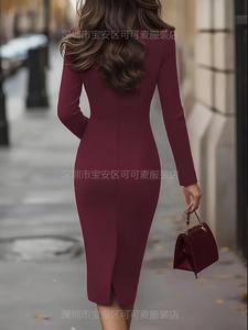 2025亚马逊跨境欧美秋装新款气质女通勤修身长袖钮扣职业连衣裙