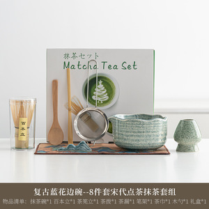 亚马逊日式抹茶碗带嘴陶瓷茶具茶道配件茶筅立工具套装跨境专供