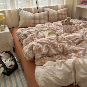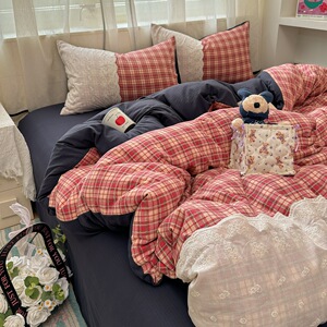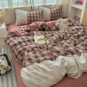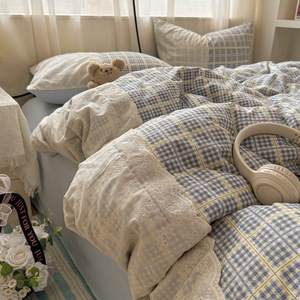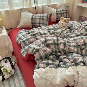 新款A类母婴亲肤少女风花边四件套皱皱纱床单被套宿舍三件套床品4