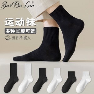 黑白袜子男女秋冬韩版中筒袜夏天学生纯色运动棉袜男士吸汗长筒袜