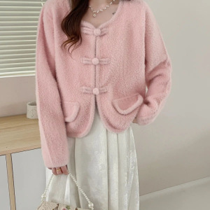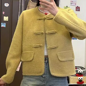 中国风双面呢外套秋冬新款针织开衫韩系洋气百搭优质小香风毛衣女