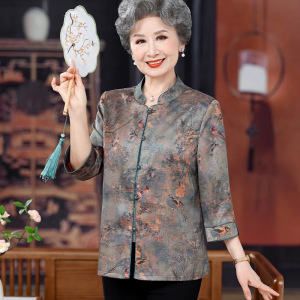 奶奶装春夏季衬衫中老年人立领衬衣女气质妈妈上衣老人唐装七分袖