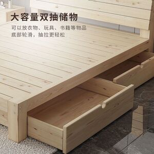 【6龙骨超强升级】实木床30高+床垫+抽屉