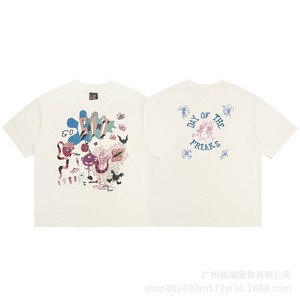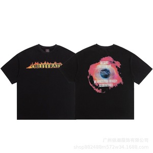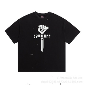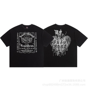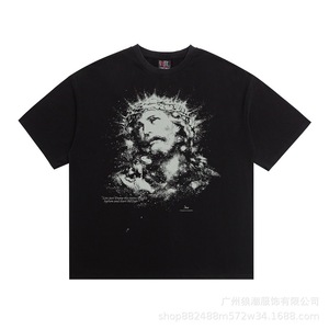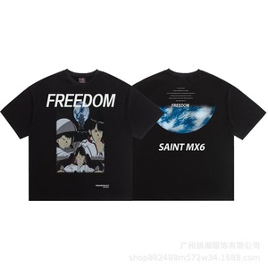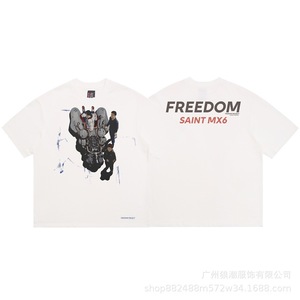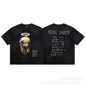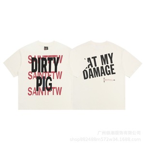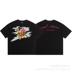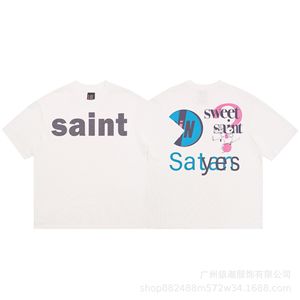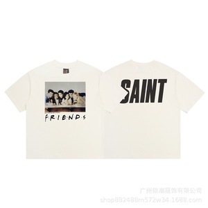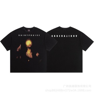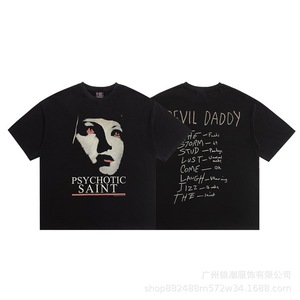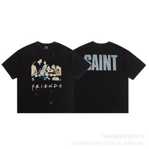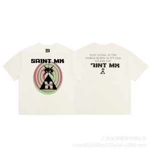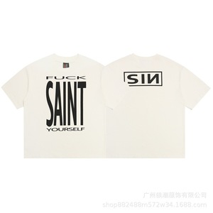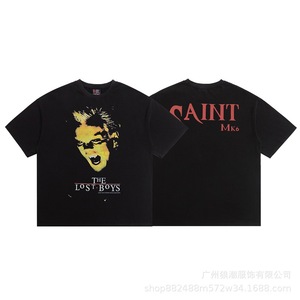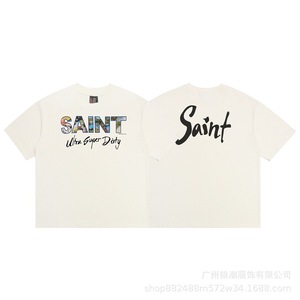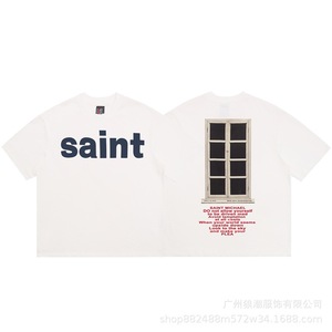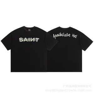 25美潮Saint Michael复古街潮男女同款短袖宽松印花水洗做旧T恤
