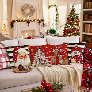2025新款圣诞抱枕套跨境热销印花抱枕套家居沙发靠枕套卧室靠垫套