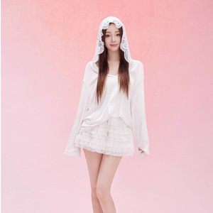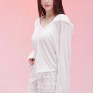 年秋纯欲风蕾丝拼接连帽长袖T恤女显瘦打底衫上衣