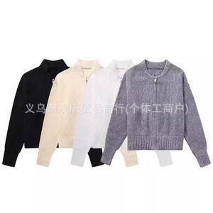 欧美跨境速卖通热销拉链开衫毛衣女秋冬休闲气质通勤百搭外套