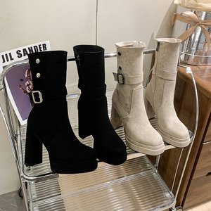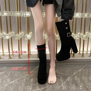 小众复古风粗跟显瘦靴子女2025新款夏季百搭增高小个子高跟中筒靴