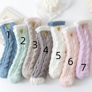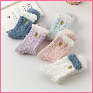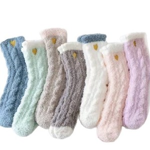 珊瑚绒厚袜子女冬季情侣刺绣爱心毛绒袜子加绒加厚保暖地板月子袜