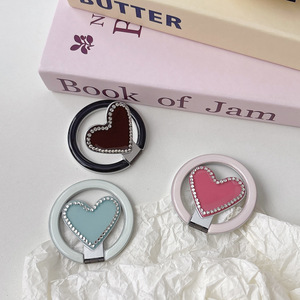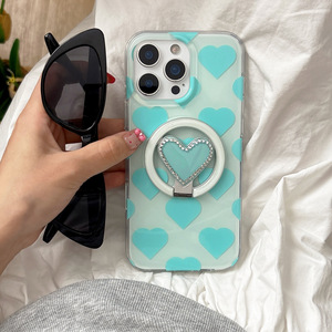 适用IP16promax双层IMD手机壳苹果15满屏爱心闪钻折叠支架磁吸壳
