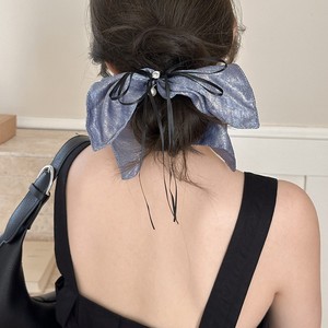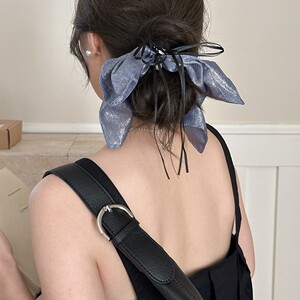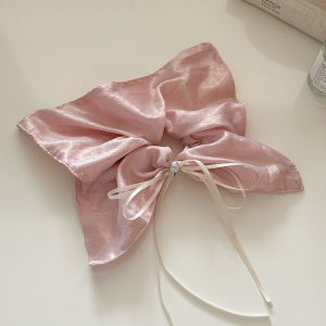 复古百搭珠光细闪方巾飘带蝴蝶结方巾发圈女气质扎发头绳皮筋发饰