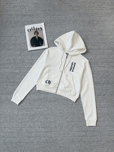 正确版 25ss新款CH克罗伈梵文印花十字架拉链短款外套连帽卫衣女