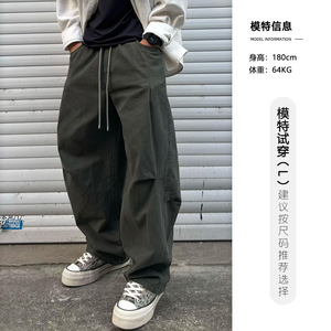 秋季男士长裤水洗加厚休闲手感棉百搭工装弯刀松紧腰直筒裤裤子潮
