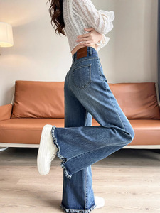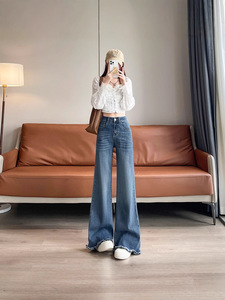 复古微喇牛仔裤女秋季2025年高腰宽松不贴腿超火弹力阔腿喇叭裤子