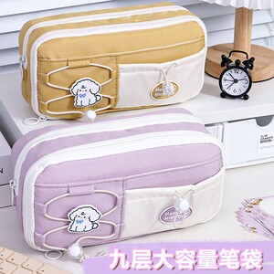 超可爱小狗笔袋9层大容量抽绳笔袋女生初中生文具袋高颜值铅笔盒