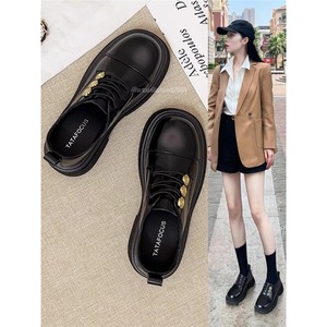 赫本风复古厚底小皮鞋女2025春秋新款一脚蹬乐福鞋英伦JK单鞋