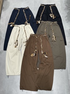 2025早秋新品百搭美式松弛感工装裤腰部抽绳纯棉洗水弯刀休闲长裤