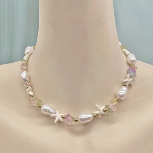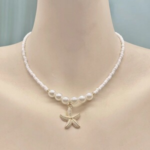 波西米亚度假风手工串珠米珠项链海洋沙滩风海星贝壳颈链项链套装