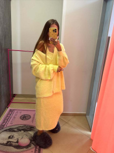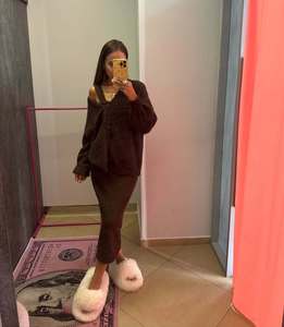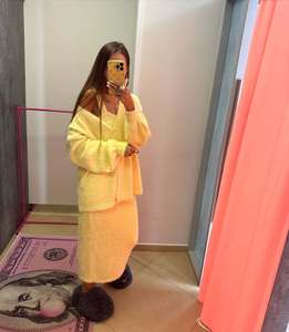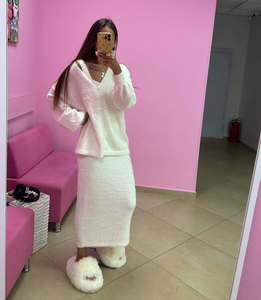 日系甜美奶fufu外穿女秋冬新款纯色宽松慵懒风针织衫外套+连衣裙