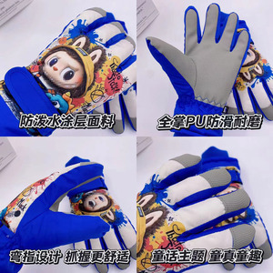 冬季儿童保暖手套卡通滑雪户外骑车手套防水防风防磨加绒加厚手套
