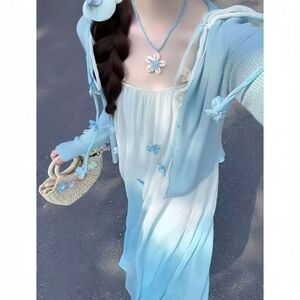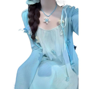 品质原创大量现货薄荷曼波风渐变蓝吊带