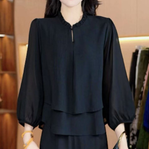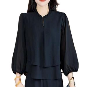 2025新款中长款宽松型千金风常规款衬衫女装收腰老钱风松弛感女装