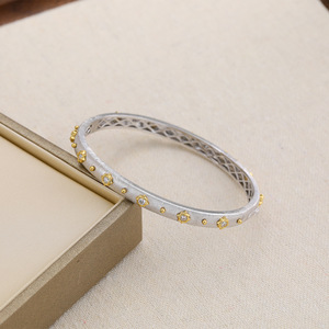 意大利复古拉丝手镯女新款s925纯银分色镀金开口手环小红书爆款