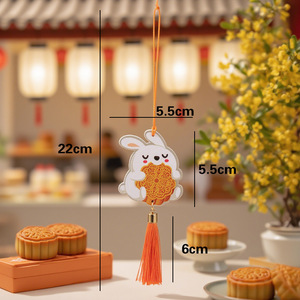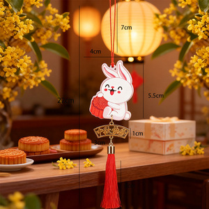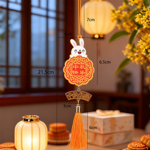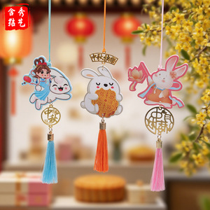 博婷中秋节兔子木牌挂件 中秋节挂件diy手工节日礼盒流苏配件批发