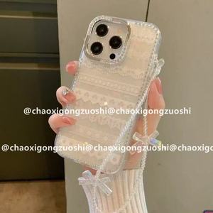 韩系ins可爱简单高级感白蕾丝适用iPhone16promax苹果15手机壳14